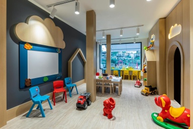 Есть свой фитнес-центр, плюс плюшки типа хамама, сауны, джакузи, даже стол для настольного тенниса. Также бассейн с детской зоной.